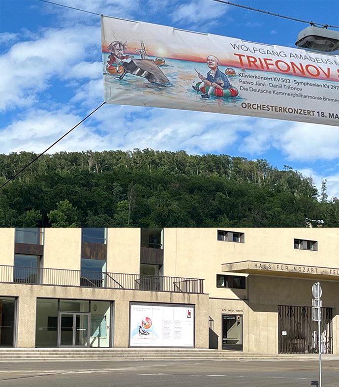 Ausserdem wollten die Organisatoren (Festspiel OK) lieber ein Foto von Cecilia Bartoli auf der Front des Festspielgebäude als eine Karikatur von Mozart.