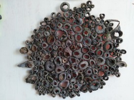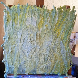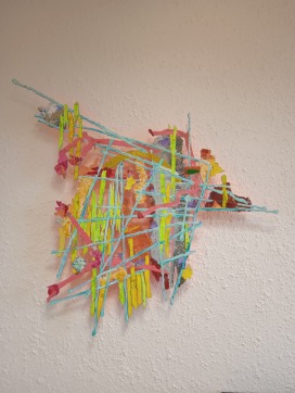 Die Arbeiten im Atelier sind Ausdruck der inneren Spuren des täglich Erlebten, nicht «konzeptionell» formuliert, sondern emotional, «freigelassen». Am Anfang stehen Materialien, Gefundenes, die zu einem spielerischen Anfang inspirieren. Der Ausgang ist offen ohne Intension. Die Resultate sehr verschieden im Ausdruck. So entstehen Malereien, Collagen, Reliefs, Geflechte und dreidimensionale Gebilde.